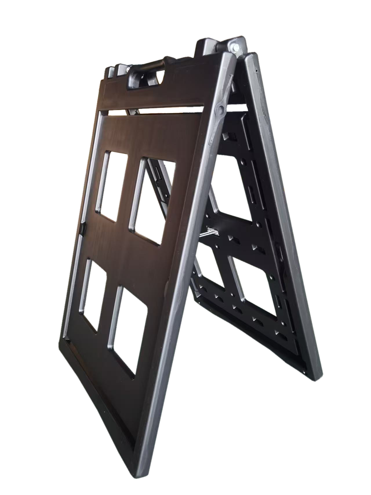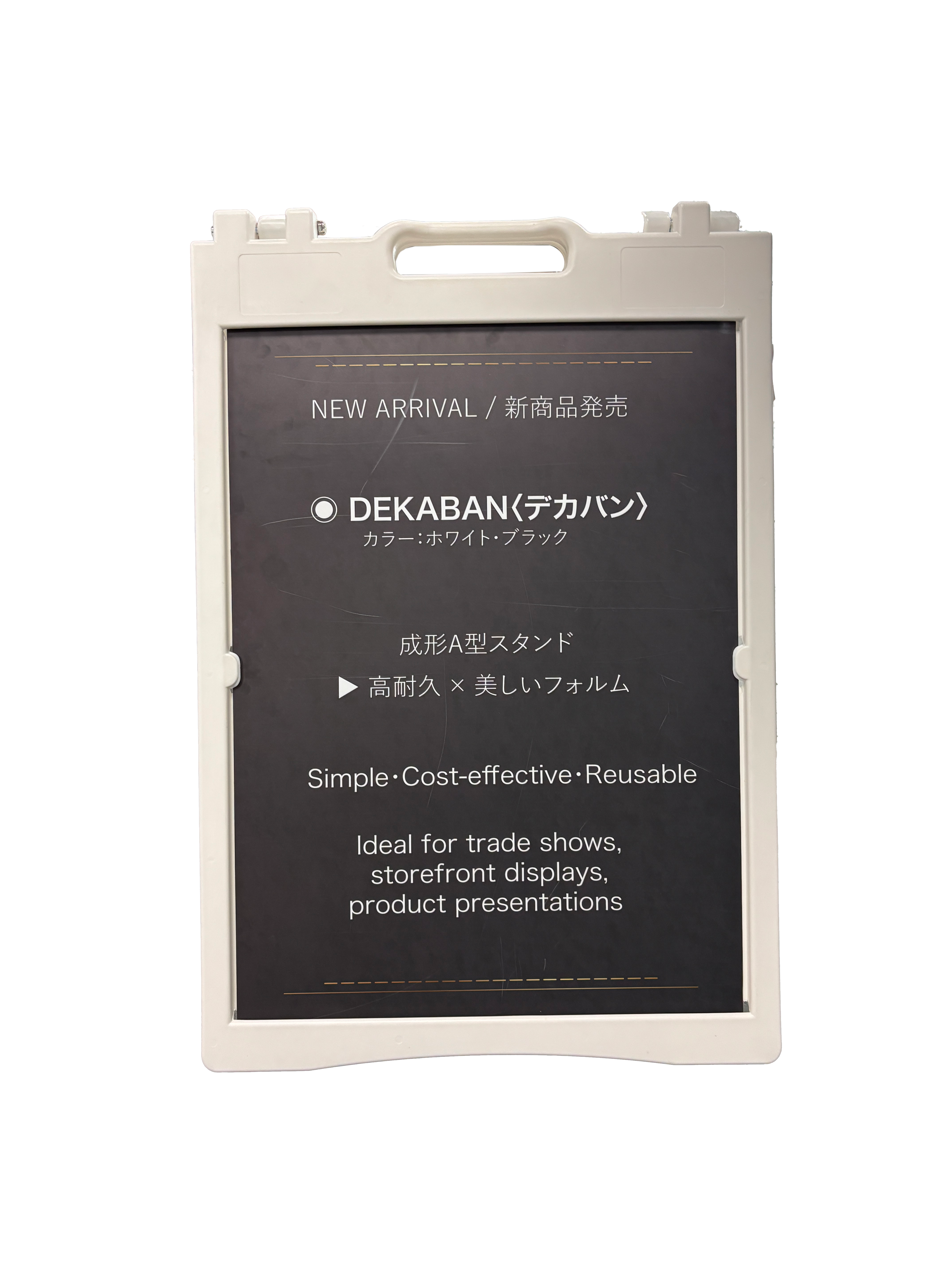 店舗前やイベント会場での掲示に最適な「屋外用樹脂A型スタンド」が新登場。安定感があり耐風試験の結果も良好な大型A型スタンド看板です!高耐久な樹脂素材を使用し、風雨に強く、長期間の屋外使用にも安心です。折りたたみ式で設置・収納が簡単!清潔感のあるホワイト・クールなブラックの2色展開、コストを抑えたい店舗様にぴったりの高コスパ商品です。カフェや小売店、展示会など、さまざまなシーンで大活躍します!